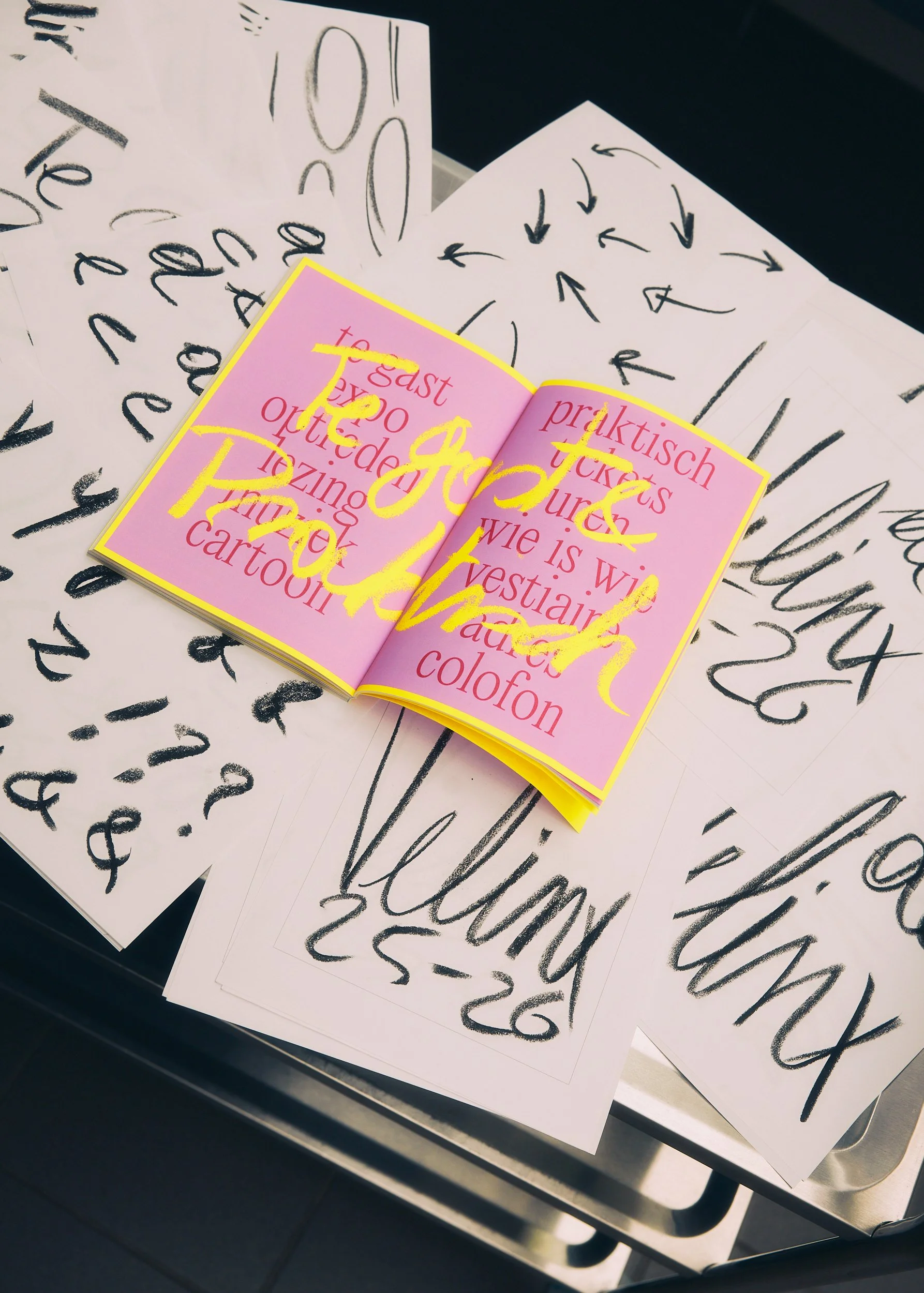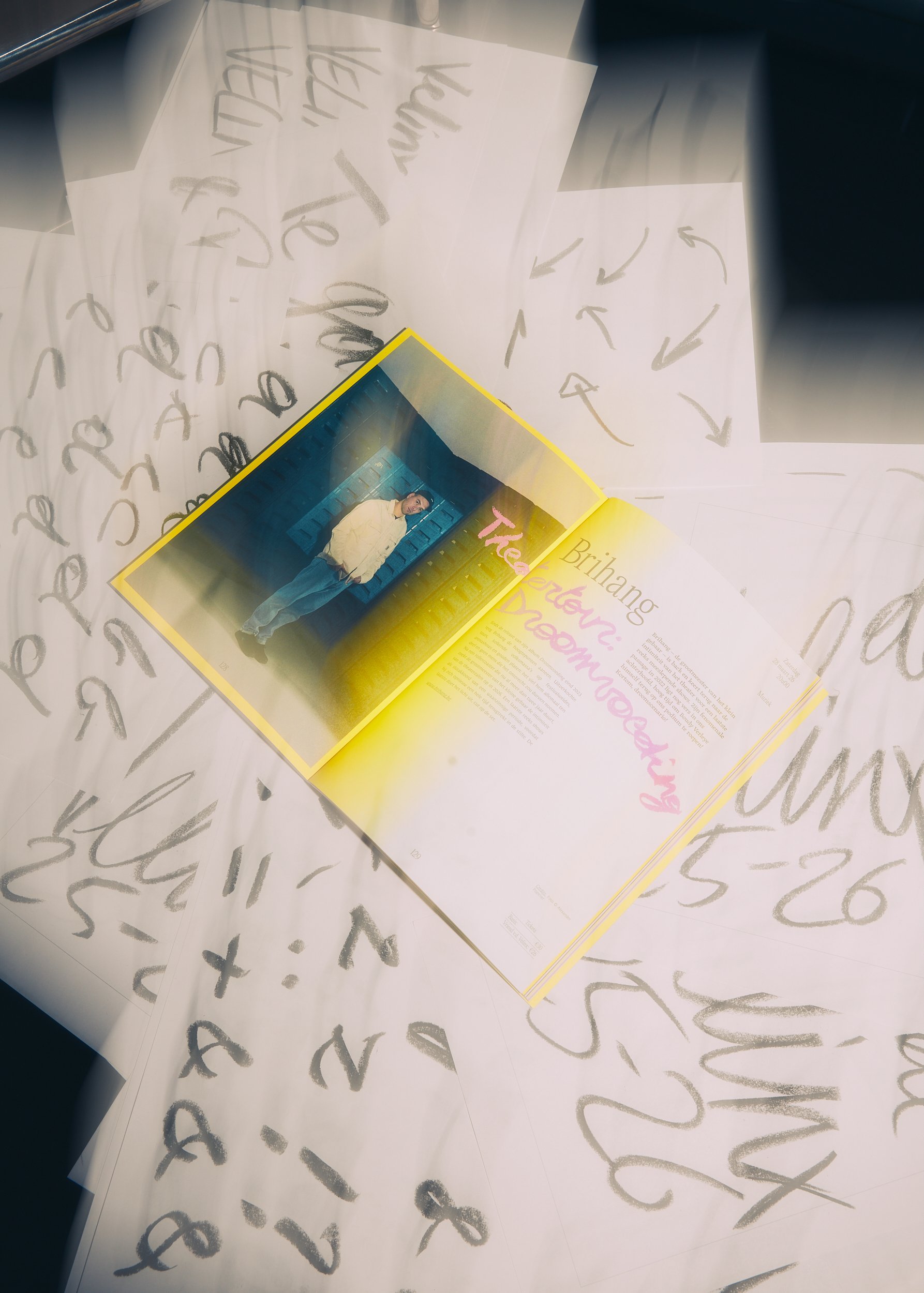 Piles of rough charcoal sketches laid the foundation for a fully custom, handwritten typeface and a bold, glossy cover that shouts "NEW CULTURAL SEASON INCOMING!"
